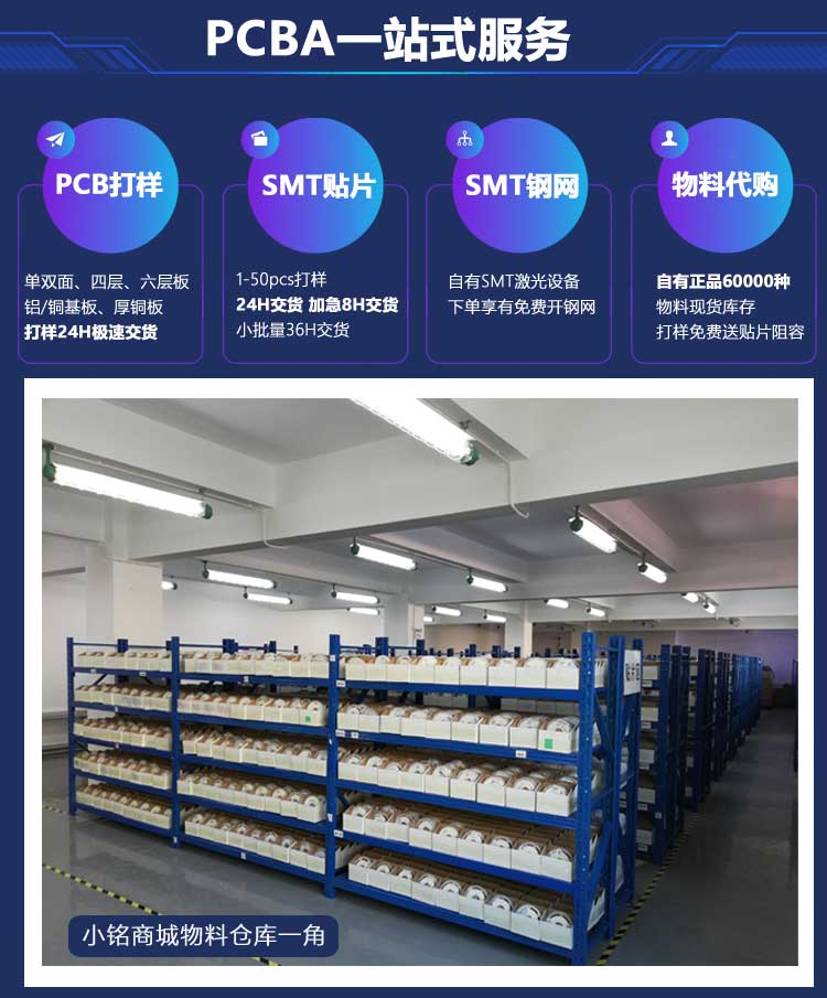 深圳PCBA打樣 BOM元器件代購配單業務?小銘元器件商城該平臺將大數據與人工智能技術相結合,提供包括成本計算,風險管理,替代材料建議以及整個BOM采購的服務。同時,小銘打樣希望成為硬件制造商,PCBA公司,,SMT公司等的一站式采購部門,以幫助他們提高采購效率,并節省人力資源,時間和材料的成本。