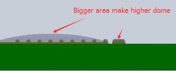 結(jié)果,由于液體張力,較大面積的焊膏將產(chǎn)生比較小面積更高的圓頂。